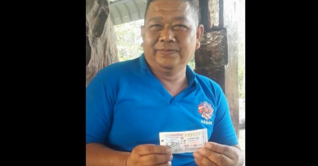นี่เป็นภาพโฉมหน้านายชำนาญ คงสกุล หนุ่มกรีดยางที่พ่วงตำแหน่งสมาชิก อบต.ชัยบุรี จังหวัดสุราษฎร์ธานี คนดวงเฮงที่กลายเป็นเศรษฐีในพริบตา ถ่ายรูปโชว์กับลอตเตอรี่รางวัลที่ 1 กับครอบครัว พร้อมถ่ายคลิปสุดประทับใจ เอารางวัลไปมอบให้กับแม่