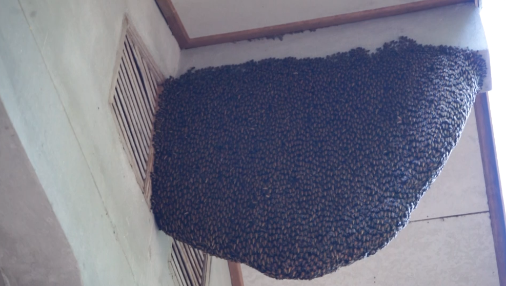 สุราษฎร์ธานี 22 มี.ค.- ที่บ้านหลังหนึ่งในหมู่ 9 จ.สุราษฎร์ธานี มีฝูงผึ้งหลวงแห่มาทำรังภายในบ้าน เจ้าของกลัวเด็กๆ ได้รับอันตราย ใช้สเปรย์ฆ่ายุงฉีดไล่ แต่ผึ้งก็ไม่ไป มีส่วนหนึ่งบินออกไปไม่นานก็กลับมาพร้อมฝูงผึ้งที่มากขึ้นกว่าเดิม ทำรังเพิ่มอีก 2 รัง เจ้าของบ้านทำใจยอมรับ