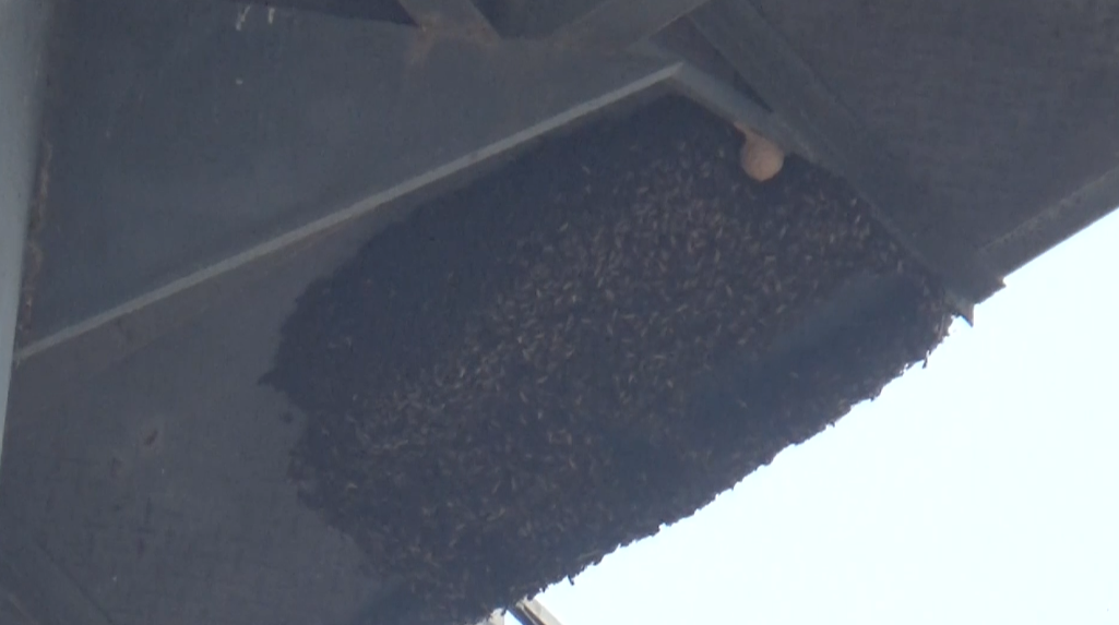 ส่วนคนงานที่ติดอยู่บนป้ายจำนวน 3 คนนั้น 2 คนได้อยู่บริเวณแคทวอล์ก หรือทางเดินกลางป้ายโฆษณาโดยใช้ป้ายไวนิลคลุมตัวเองไว้ เพื่อหลบฝูงผึ้งหลวงอีก 1 คนได้ปีนขึ้นไปบนยอดของป้ายโฆษณา กระทั่งเวลาประมาณ 12.00 น. รถกระเช้าก็สามารถช่วยคนงาน 2 คนที่อยู่บริเวณแคทวอล์กลงมาได้สำเร็จ ซึ่งระหว่างลงมาถึงด้านล่างนั้น ฝูงผึ้งได้บินตามลงมาด้วยเจ้าหน้าที่ใช้เครื่องพ่นยาไล่ฝูงผึ้ง และสามารถช่วยเหลือ 2 คนแรกลงมาได้สำเร็จ และส่งตัวไปที่โรงพยาบาลค่ายสมเด็จพระนเรศวรมหาราชและโรงพยาบาลพุทธชินราชพิษณุโลก