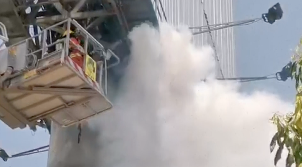 ต่อมาเวลาประมาณ 12.30 น. รถกระเช้าก็สามารถไปช่วยเหลือคนงานที่จุดด้านบนสุดของป้ายโฆษณาลงมาได้คนงานคนนี้ไม่ได้รับบาดเจ็บจากผึ้งต่อยแต่อย่างใดเนื่องจากรีบหนีขึ้นไปด้านบนสุดของป้ายและไม่ประสงค์ไปโรงพยาบาล รวมปฏิบัติการช่วยเหลือคนงานติดอยู่บนป้ายโฆษณาประมาณ 3 ชั่วโมง