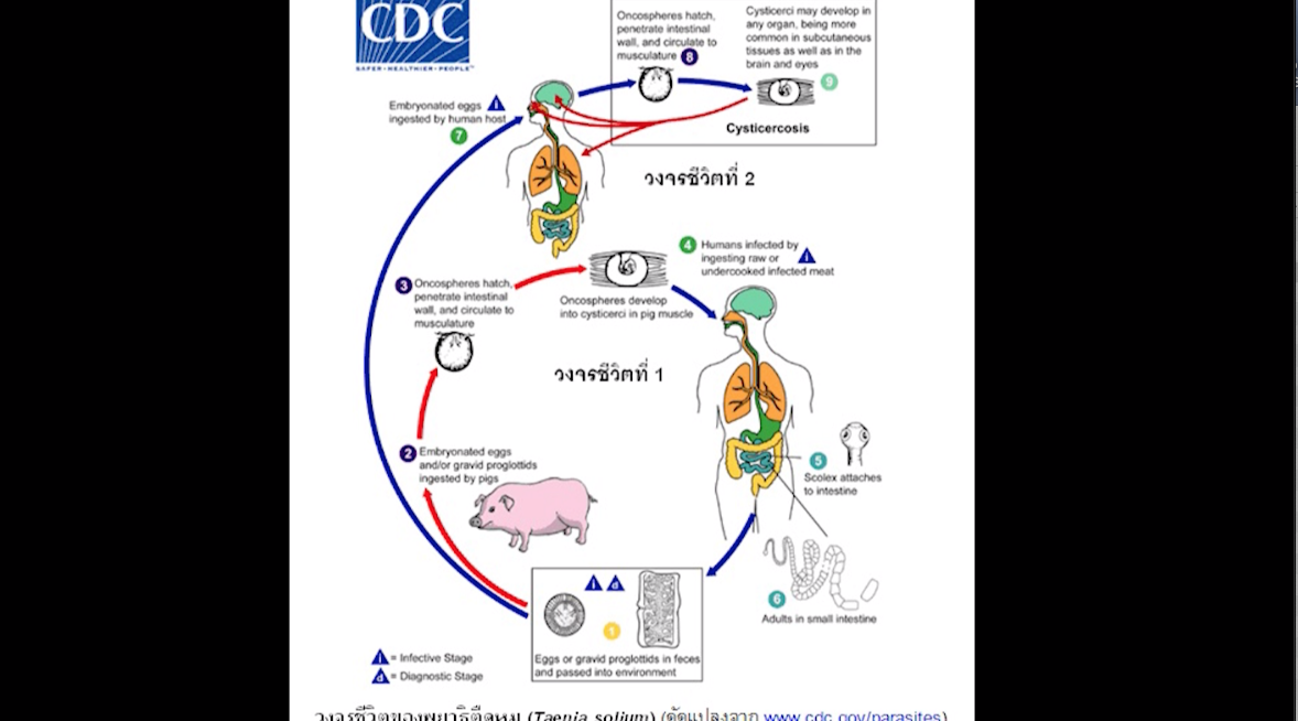 สำนักข่าวไทย 24 มี.ค.- กรณีพบพยาธิตัวตืดในคน ทำให้เกิดความวิตกในการบริโภคเนื้อวัว ล่าสุดยังพบเนื้อหมูจากตลาด พบตุ่มสีเหลืองคล้ายหนอง จนไม่กล้าบริโภค ด้านหมอเตือนไม่ใช่ระวังแค่กินเนื้อสัตว์ดิบ แต่กินผักสดก็เสี่ยงติดพยาธิได้
