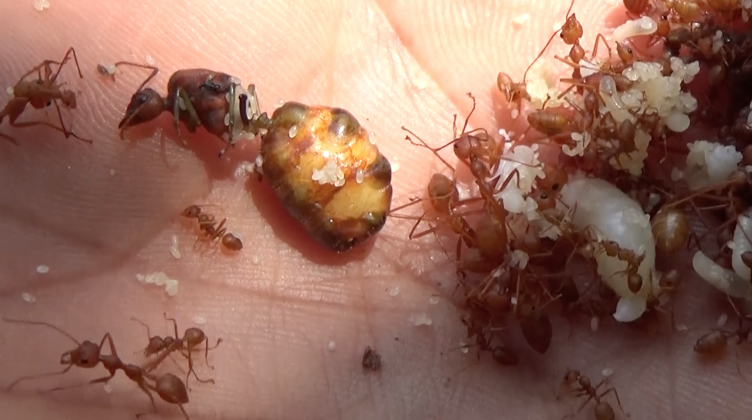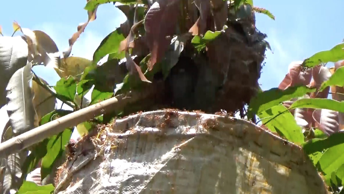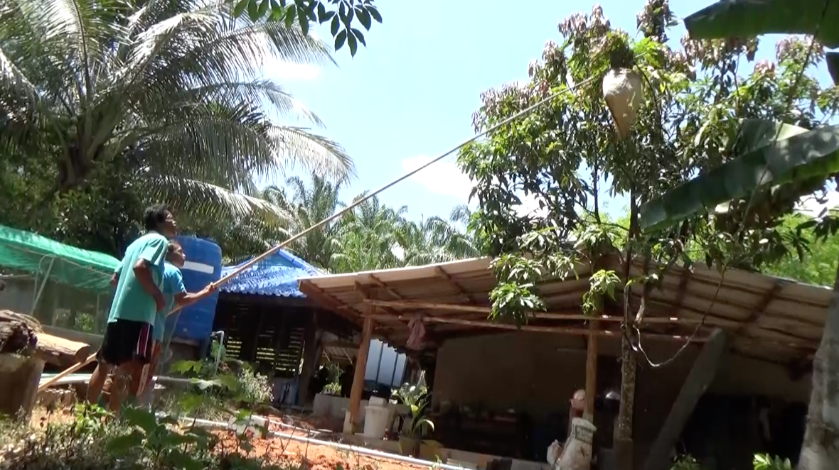 ตรัง 25 มี.ค.- ปิ๊งไอเดีย! ผู้ใหญ่บ้านแห่งหนึ่งเลี้ยงมดเเดงภายในสวนมะม่วงบริเวณบ้าน เเยงไข่ไว้กินเอง และขายสร้างรายได้เป็นกอบเป็นกำ
