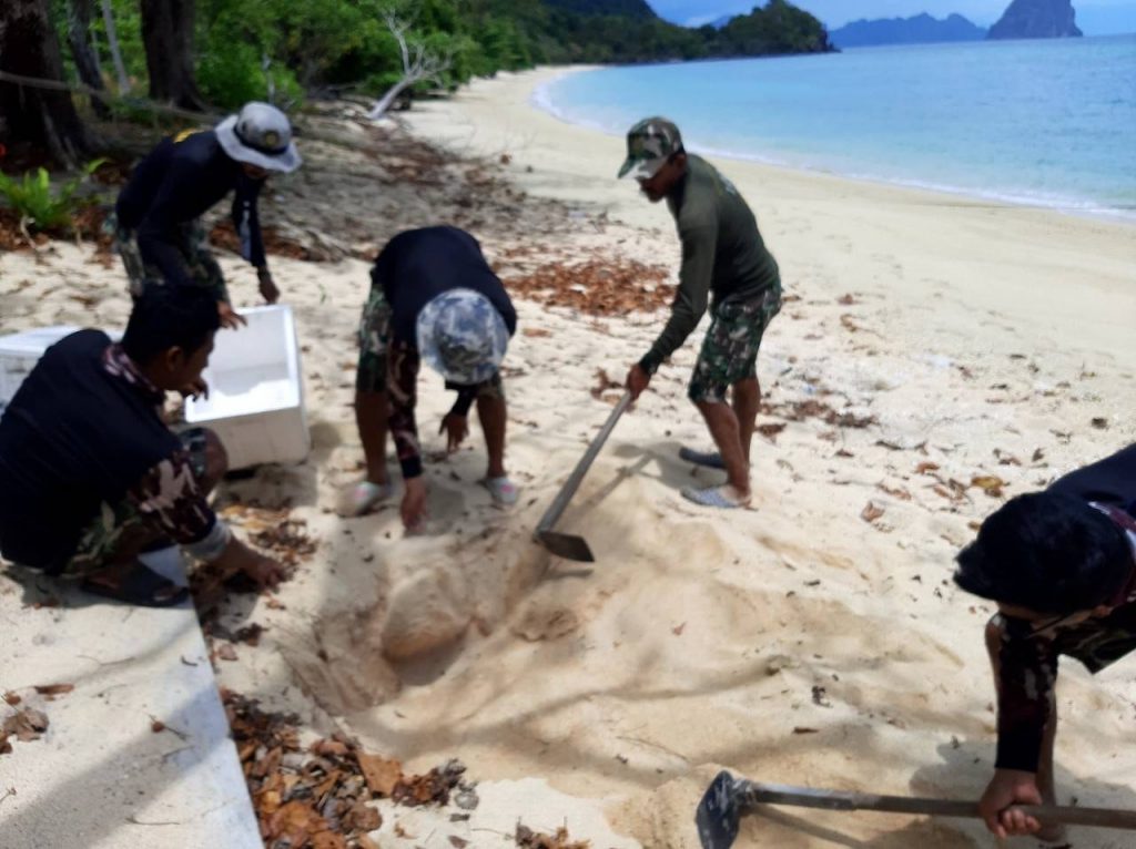 เมื่อวันที่ 29 มี.ค.64 นายวีระศักดิ์ ศรีสัจจัง หัวหน้าอุทยานแห่งชาติหมู่เกาะลันตา จ.กระบี่ รับแจ้งจากชาวบ้านในพื้นที่เกาะไหง ต.เกาะลันตาใหญ่ อ.เกาะลันตา ว่าพบรังไข่เต่าริมชายหาดบนเกาะไหง จึงสั่งการให้เจ้าหน้าที่เดินทางไปตรวจสอบ พบหลุมที่เต่าทะเลขึ้นวางไข่กว้างประมาณ 1.1 เมตร ลึกประมาณ 75 ซม. ตรวจสอบภายในหลุมไข่พบไข่เต่าจำนวน 84 ฟอง สอบถามจากชาวบ้านบนเกาะ เบื้องต้นทราบว่าเต่าทะเลที่ขึ้นมาวางไข่ น่าจะเป็น เต่าตนุขึ้นมาวางไข่เมื่อประมาณ 1-2 วันที่ผ่านมา ซึ่งจุดที่แม่เต่าขุดหลุมวางไข่ เป็นจุดที่อยู่ไม่ห่างจากน้ำทะเลมากนัก ทำให้ช่วงน้ำขึ้น น้ำทะเลจะไหลเข้าท่วมในหลุม ซึ่งทางเจ้าหน้าที่เกรงว่าน้ำทะเลจะทำให้ไข่เต่าได้รับความเสียหายได้ จึงตรวจสอบไข่เต่าทั้งหมดในรัง พบว่ามีไข่ที่เสียหายไปแล้วจำนวน 7 ฟอง จึงต้องเคลื่อนย้ายไข่ที่เหลืออีก 77 ฟอง ไปฝังไว้ในจุดที่ห่างน้ำทะเลท่วมถึง เพื่อให้ไข่ได้มีโอกาสฟักเป็นตัว