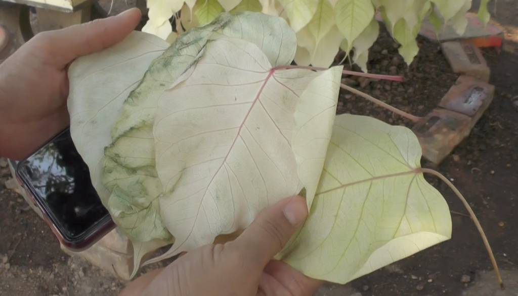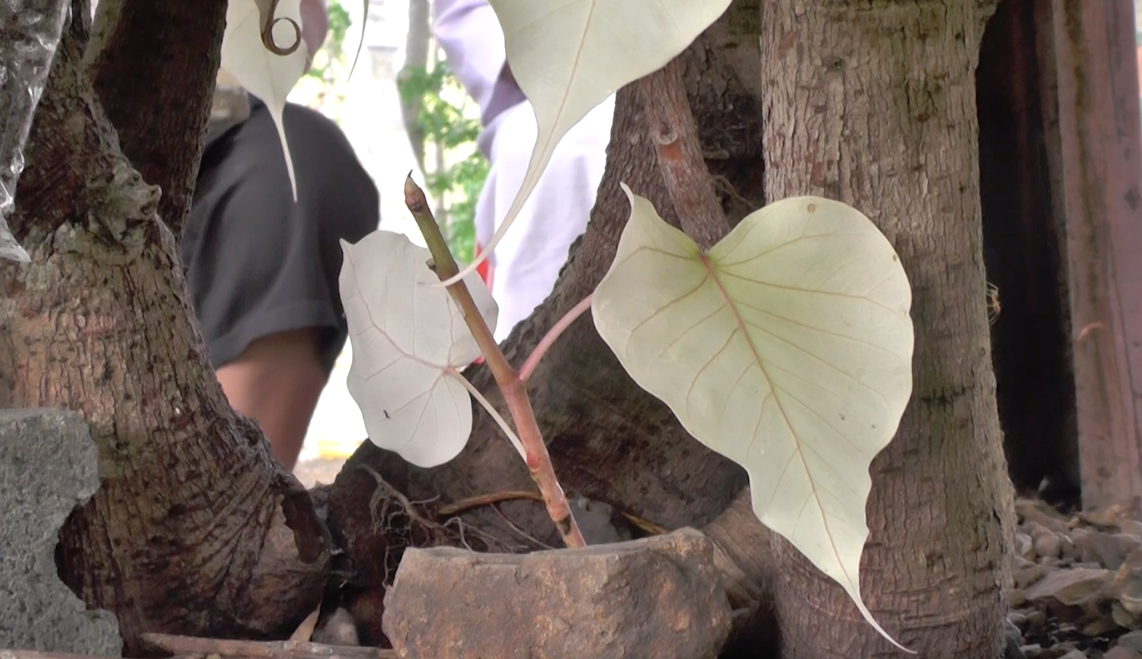 ด้านนายวิพัฒน์ ด้วงวงศ์ อายุ 74 ปี เป็นมัคนายกและดูแลวัดนี้มาหลายสิบปี เปิดเผยว่า ต้นโพธิ์ใหญ่ที่เห็นก็มีอายุไม่ต่ำกว่า 90 ปี เพราะตนเกิดมาก็เห็นเป็นต้นใหญ่แล้ว ปัจจุบันได้แตกกิ่งก้านสาขาเป็นต้นใหญ่ และก็มีต้นเล็กแตกออกมาหลายต้น ส่วนต้นที่มีใบสีขาวนั้นเมื่อประมาณ 16 ปี ที่ผ่านมา ขณะที่ตนกำลังกวาดใบโพธิ์ที่ร่วงหล่นและทับถมกันอยู่นั้น ก็เห็นใบโพธิ์ตนเห็นว่าเป็นสิ่งแปลกประหลาด จึงได้ใช้ไม้ล้อมไว้ ตกดึกคืนนั้นตนก็ได้ฝันว่า มีผู้สูงอายุชาย-หญิง แต่งชุดขาว เดินมาบอกว่าให้ตนดูแลด้วย เพราะเคยดูแลกันมาเมื่อประมาณ 1 พันปีที่ผ่านมา ตนจึงเชื่อว่าเป็นดวงวิญญาณของสิ่งศักดิ์สิทธิ์ที่สิงสถิตย์อยู่ที่ต้นไม้ จึงได้ดูแลคอยรดน้ำพรวนดินดูแลมาตลอด และเป็นสิ่งที่แปลกก็คือ ประมาณกลางเดือนมีนาคมของทุกๆ ปี จะผลิใบอ่อน ใบจะเป็นสีชมพู จากนั้นก็ค่อยๆ เปลี่ยนเป็นสีขาวนวลทั้งต้น จนถึงเดือนกันยายนใบก็จะร่วง โดยที่ไม่เปลี่ยนเป็นสีเขียวหรือสีน้ำตาลเหมือนใบโพธิ์ทั่วๆ ไปเลย และเมื่อร่วงหล่นชาวบ้านก็จะขอไปบูชา รวมทั้งบางรายก็นำไปเป็นส่วนผสมของวัตถุมงคลต่างๆ และเมื่อร่วงหล่นหมดต้นแล้วกิ่งก็จะแห้ง ตนก็จะทำการตัดแต่งกิ่ง รอจนกระทั่งเดือนมีนาคมก็จะเริ่มผลิใบอ่อนอีกครั้ง.-สำนักข่าวไทย