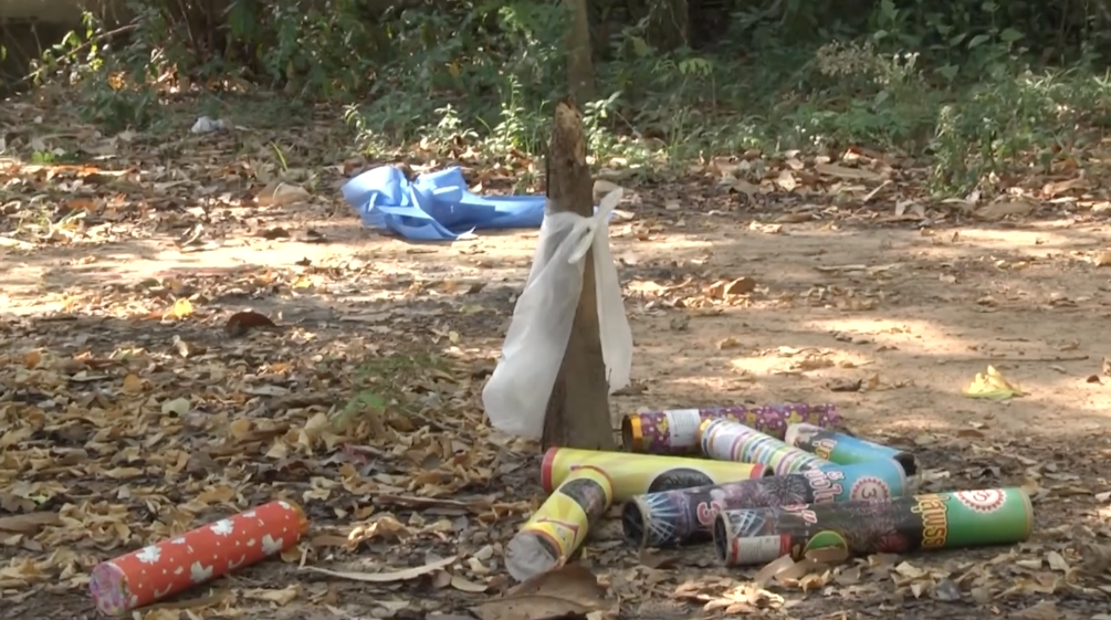 ส่วนบริเวณเมรุเผาศพวัดหน้าพระธาตุพบว่า จุดที่ตั้งเมรุเผาศพห่างจากรั้วโรงเรียนที่เกิดเหตุประมาณ 50 เมตร ด้านหลังเมรุพบร่องรอยการจุดพลุงานศพทิ้งไว้เป็นจำนวนมาก ซึ่งจากการสอบถามชาวบ้านทราบว่า ปัจจุบันชาวบ้านมักจุดพลุในงานศพโดยใช้พลุแบบใหม่ที่มีเสียงดัง และแตกกระจายในท้องฟ้า ซึ่งพลุแบบนี้จะไม่ค่อยมีเศษพลุตกลงมาด้านล่าง ขณะที่วันเกิดเหตุคนจุดพลุได้ใช้พลุตะไลทำจากไม้เหมือนบั้งไฟ จึงทำให้มีเศษของไม้หล่นลงมาใส่หัวเด็กดังกล่าวง