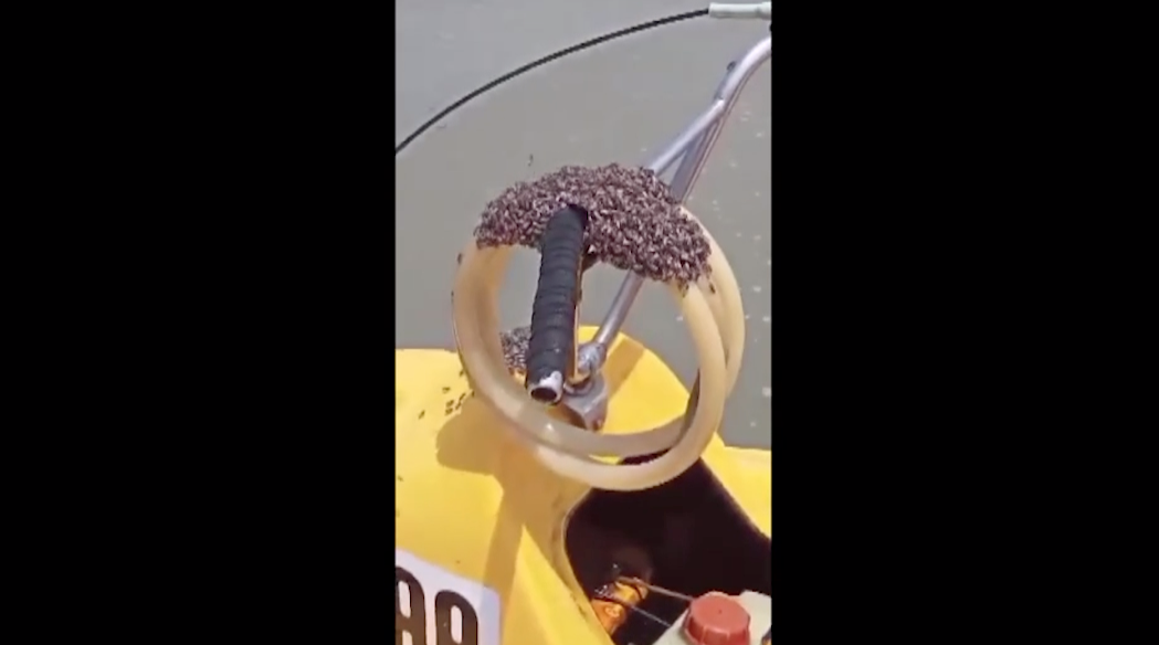 นี่คือคลิปที่ถ่ายจากมือถือของนายจุฑา จิตสุภาพ อายุ 42 ปีเจ้าของเรือบานาน่าโบ๊ท ที่ถ่ายภาพของผึ้งกลุ่มใหญ่ที่บินมาเกาะที่เรือและพวงมาลัยของเรือ หมายเลข 088 ที่ผู้ประกอบการเรือบริเวณใกล้เคียงต่างพากันแปลกใจ ที่เห็นฝูงผึ้งบินมาเกาะเรือที่จอดอยู่บริเวณริมชายหาดบางแสน จังหวัดชลบุรี ทำเอานักท่องเที่ยวที่รอเล่นเรือบานาน่าโบ๊ทและผู้มาพบเห็นต่างฮือฮา