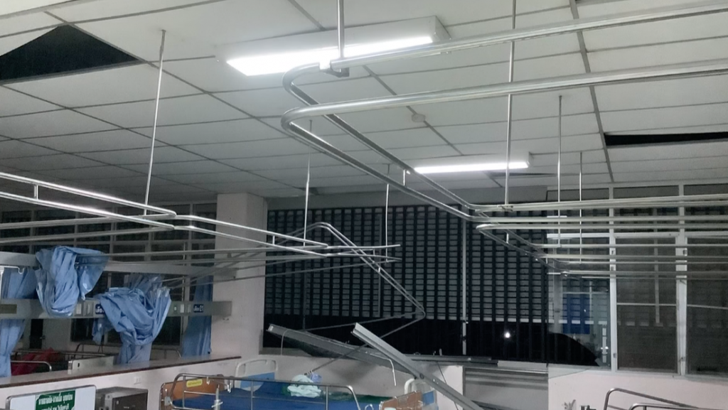 ล่าสุดวันนี้ จากสำรวจความเสียหายพบว่าหอผู้ป่วยนอก ชั้น 2 และ ชั้น 3 พังเสียหาย หลายจุด ประเมินเบื้องต้น มูลค่าความเสียหายกว่า 100,000 บาท ด้านผู้ป่วยที่อยู่ในเหตุการณ์ เล่าถึงวินาทีที่ลมพายุพัดกระหน่ำฝาผนังห้องผู้ป่วยว่า ขณะที่ตนนอนอยู่ได้ยินเสียงมีคนหวีดร้อง และมีเสียงดังโครมตามมา พอลืมตามองดูก็เห็นฝ้าเพดานลอยหมุนอยู่ และหล่นลงมา ลูกเขยจึงมาช่วยนำตัวตนออกมา โชคดีที่ขยับเตียงออกมาทัน ไม่ถูกฝ้าเพดานลอยตกใส่ ขณะนั้นตนยอมรับว่าตกใจมาก ลุกวิ่งหนีก็ไม่ได้ เพราะตนยังป่วยอยู่ช่วยเหลือตัวเองไม่ได้