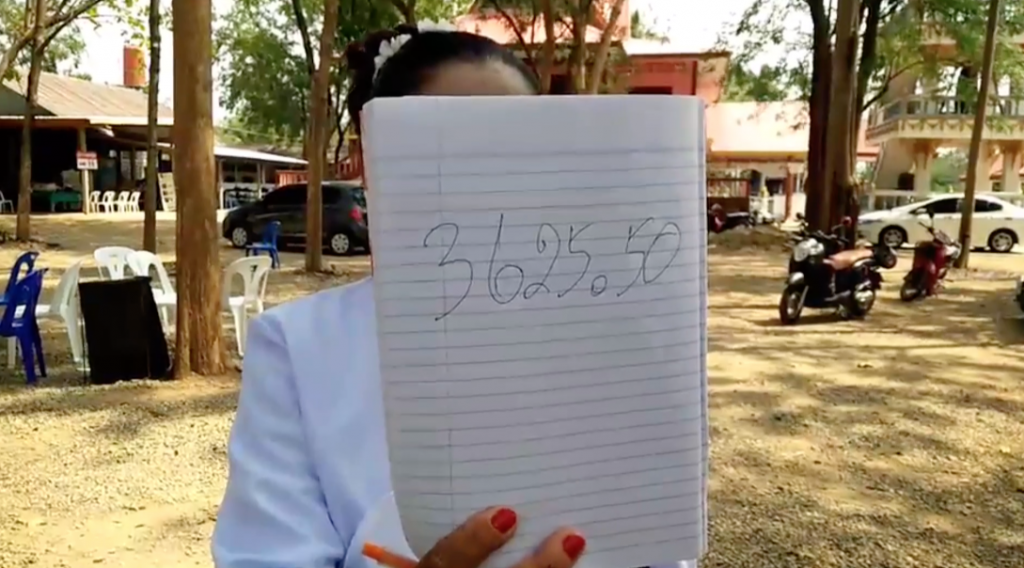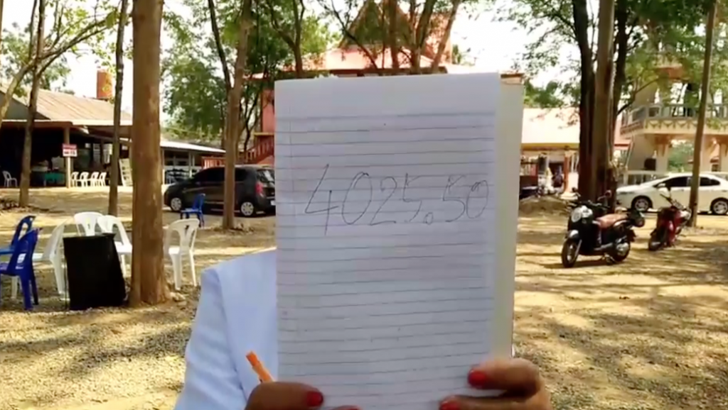 ผู้สื่อข่าวรายงานว่า หลังจากพิธีเสร็จสิ้นชาวบ้านต่างก็มาส่องเลขที่ขันน้ำมนต์ เพื่อนำไปเสี่ยงโชค และนอกจากนั้นบางรายก็ยังนำเอาเลขของยอดผ้าป่า นำไปซื้อเลขเด็ดหวังรวยในงวดวันที่ 1 เมษายน 2564 นี้ สำหรับตัวเลขที่เห็นในขันน้ำมนต์ มองเห็นแตกต่างกันไป เช่น 580,753,752,53 ส่วนตัวเลขยอดผ้าป่าคือ ยอดแรก 3,625.50 บาท ยอดที่สอง 4,025.50 บาท.-สำนักข่าวไทย