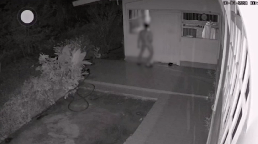 ระยอง 1 เม.ย.- กล้องวงจรปิดจับภาพชายโรคจืตยืนสไลด์หนอนบริเวณบ้านหลังหนึ่งใน จ.ระยอง เจ้าของบ้านเผยชายรายนี้น่าจะเป็นรายเดียวกับที่เคยงัดบ้านตนมาเเล้วช่วงต้นปี
