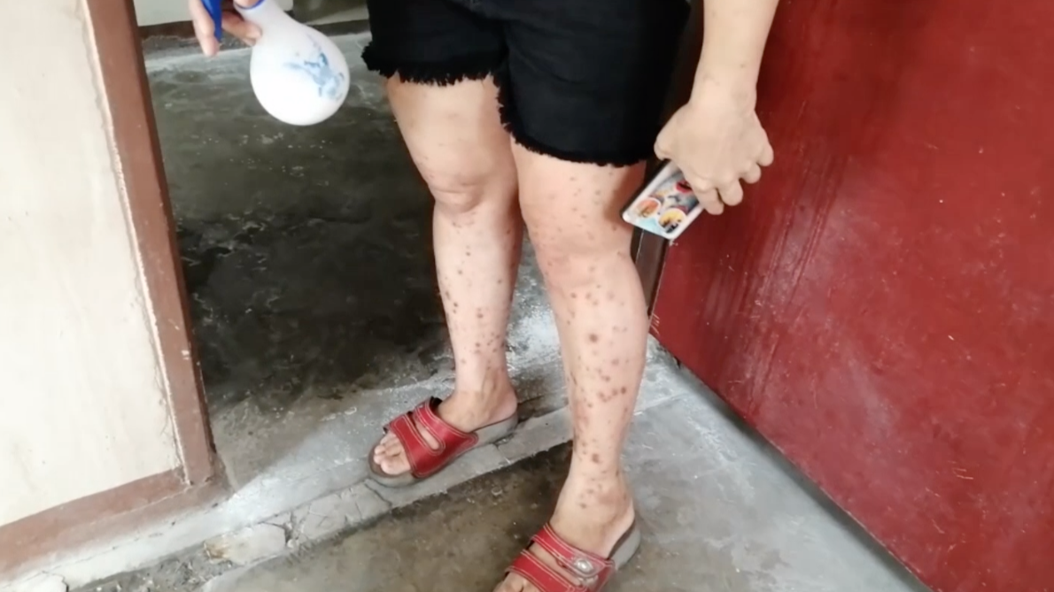 นางสาววาสนา สุภาพรรณ ผู้พักอาศัยชั้นที่ 2 กำลังใช้ฟ็อกกี้ที่ใส่ยาฆ่าเห็บหมัดฉีดเข้าที่กำแพง ที่มีตัวเห็บไต่ยั๊วเยี๊ยะเกือบทั้งชั้น และมีการโรยผงฆ่าเห็บหมัดไว้ตรงประตูทางเข้าห้องแต่ก็ไม่เป็นผล ทั้งนี้เจ้าตัวยังโชว์บาดแผลที่ขาซึ่งเป็นแผลพุพองบางส่วนเป็นแผลเป็นสีดำช้ำให้ดู ซึ่งแพทย์ระบุว่าเกิดจากแพ้พิษสัตว์ ตนเองอยากให้หน่วยงานที่เกี่ยวข้องเข้ามาช่วยเหลือ เพราะเดือดร้อนมากว่า 2-3 เดือนแล้ว สาเหตุเกิดมาจากมีผู้พักอาศัยนำสัตว์เลี้ยงขึ้นมาเลี้ยงในห้องพักแล้วไม่ดูแลความสะอาด มิหนำซ้ำยังปล่อยให้สุนัขตายภายในห้องทำให้เห็บหมากระจายไปทั่วทั้งชั้นและมีจำนวนมาก เห็บยังเคยกัดลูกวัย 1 เดือนด้วย ที่ผ่านมาได้ประสานนิติบุคคล ฉีดยาฆ่ามาแล้ว3ครั้ง ทำให้เบาบางลงบ้างแต่ไม่หมด