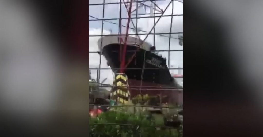 เวลา 14.30 น.ที่ผ่านมา คลิประทึกของชาวบ้านที่อาศัยอยู่บริเวณริมแม่น้ำเจ้าพระยา ใกล้เสาส่งไฟฟ้าแรงสูง หมู่ 6 ถนนปู่เจ้าสมิงพราย ต.บางหญ้าแพรก อ.พระประแดง จ.สมุทรปราการ ถ่ายเอาไว้ และเผยให้เห็นเหตุการณ์ระทึกขณะเรือขนส่งสินค้าขนาดใหญ่เสียหลักเฉี่ยวชนตลิ่ง จนทรัพย์สินของชาวบ้านที่อาศัยอยู่ริมแม่น้ำได้รับความเสียหาย