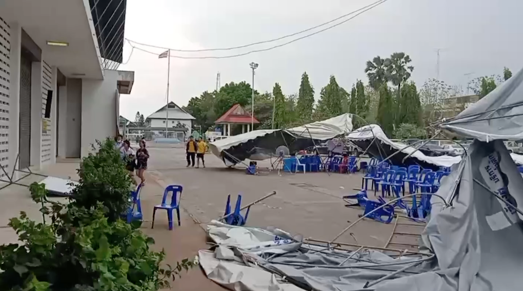 หลังเกิดพายุฤดูร้อนพัดถล่มในพื้นที่อำเภอเมืองบึงกาฬ จังหวัดบึงกาฬ โดยเฉพาะหมู่บ้านที่อยู่ติดริมแม่น้ำโขง มีฟ้าร้องก่อนจะมีลมกรรโชกแรงจากนั้นมีลูกเห็บตกในหลายพื้นที่ เจ้าหน้าที่ลงพื้นที่สำรวจความเสียหาย พบว่าหมู่บ้านและวัดที่อยู่ติดริมแม่น้ำโขงได้รับความเสียหาย เบื้องต้นประมาณ 30 หลังคาเรือน บริเวณบ้านของนายอโนทัย คำอ้อ อายุ 39 ปี ที่มีบ้านลักษณะปูนชั้นเดียวมุงด้วยสังกะสี ถูกแรงลมพัดหลังคาปลิวไปตกในสวนยางห่างจากบ้านราว 20 เมตร เสียหายทั้งหลัง นายอโนทัย เล่าว่า ลมพายุฝนมาประมาณทุ่มกว่าๆ ตนและครอบครัวกำลังหุงข้าวเตรียมอาหารเย็นได้ยินฟ้าร้องประมาณ 2-3 ครั้ง แล้วมีลูกเห็บตกพร้อมกับลมมาพัดเอาหลังคายกไปทั้งแผงเลย หลังจากนั้นรีบพาลูกเมียขึ้นซาเล้งขับไปหลบภัยอยู่ที่ศาลากลางหมู่บ้าน
