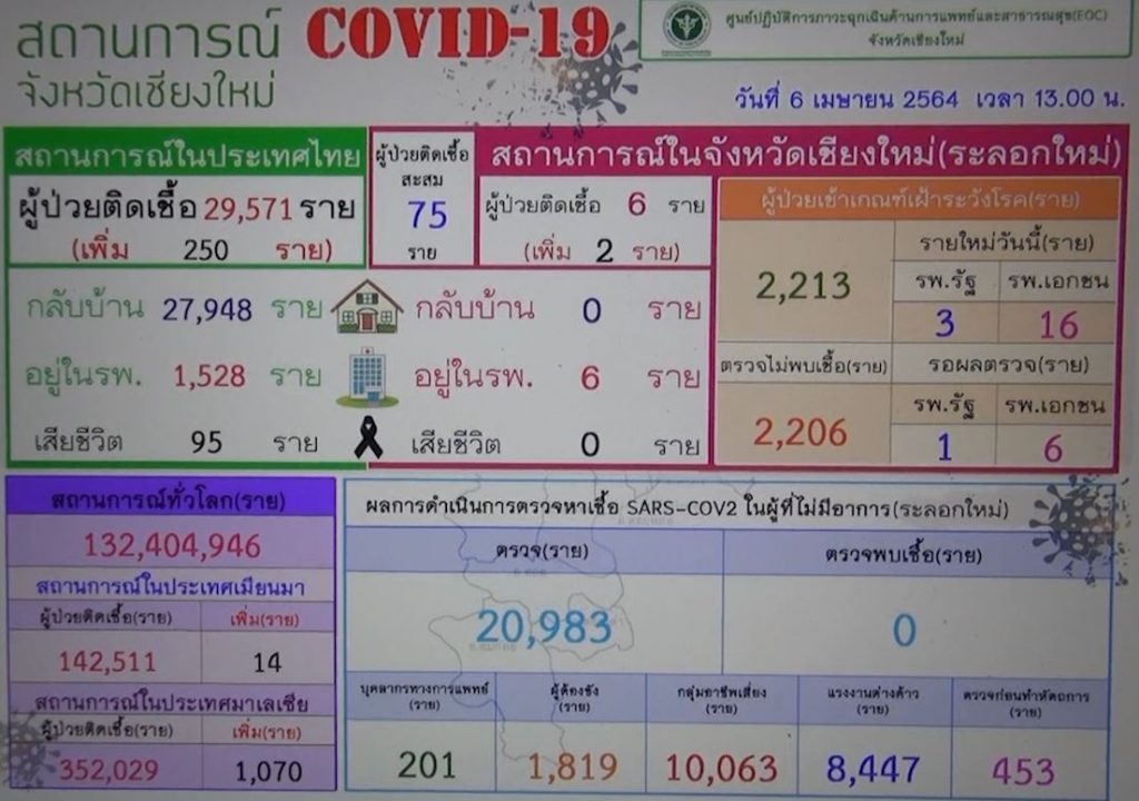 สำหรับ จ.เชียงใหม่ ขณะนี้พบผู้ป่วยโควิครายใหม่เพิ่มอีก 4 ราย และยังรักษาตัวอยู่ในโรงพยาบาลนครพิงค์ เป็นคนไทย 3 ราย และชาวจีน 1 ราย ซึ่งเป็นการรับเชื้อมาจากนอกพื้นที่. – สำนักข่าวไทย