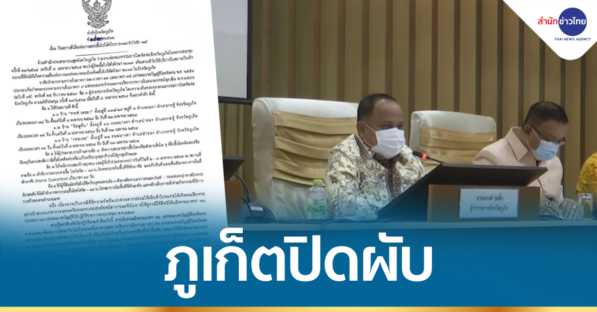 ว่าที่ร้อยตรี วิกรม จากที่ รองผู้ว่าราชการจังหวัดภูเก็ต กล่าวภายหลังการประชุม คณะกรรมการโรคติดต่อจังหวัดภูเก็ต ว่า ที่ประชุมมีมติเห็นชอบสั่งปิดสถานที่เสี่ยงต่อการแพร่เชื้อไวรัสโคโรนา 2019 หรือ โควิด-19 หลังจากสำนักงานสาธารณสุขจังหวัดภูเก็ตรายงานว่า พบผู้ติดเชื้อโควิด-19 เดินทางเข้าไปใช้บริการในสถานบันเทิงซึ่งเป็นสถานที่ก่อให้เกิดความเสี่ยงต่อการแพร่ระบาดโควิด-19 ระลอกใหม่ จำนวน 3 แห่ง เป็นเวลา 14 วัน มีผลตั้งแต่วันที่ 8 -21 เมษายน 2564 ประกอบด้วย ร้านคาเฟ่ เดลมา ตั้งอยู่ในพื้นที่ ต.กมลา อ.กะทู้, ร้านอิลลูชั่น ตั้งอยู่บริเวณ ถ.บางลา ต.ป่าตอง อ.กะทู้ และร้านเชลเทอ ตั้งอยู่บริเวณ ถ.บางลา ต.ป่าตอง อ.กะทู้ พร้อมทั้งให้ผู้ประกอบการทำความสะอาดฉีดพ่นฆ่าเชื้อโรค, ให้พนักงานของร้านทุกคนและผู้ที่เข้าร่วมงานระหว่างวันที่ 2-3 เมษายนในสถานบันเทิงทั้ง 3 แห่ง เข้ารับการตรวจหาเชื้อโควิด-19 ณ โรงพยาบาลใกล้บ้าน และกักตัวเองเพื่อสังเกตอาการในที่พัก (Home Quarantine) เป็นเวลา 14 วัน รวมทั้งให้ผู้ที่สัมผัสหรือใกล้ชิดกับบุคคลดังกล่าว สังเกตติดตามอาการตัวเอง หากมีอาการสงสัยให้เข้ารับการตรวจหาเชื้อโควิด-19 ในโรงพยาบาลใกล้บ้าน