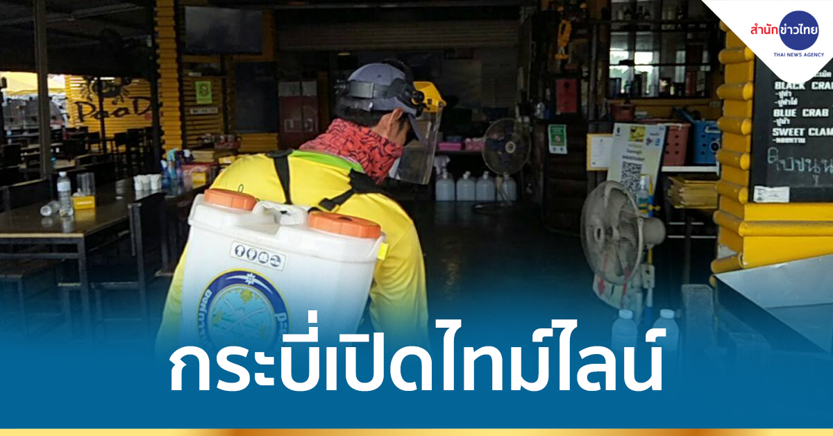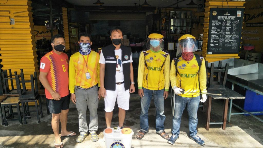 ขณะที่ชุดเฉพาะกิจโควิค-19 อบจ.กระบี่ ออกฉีดพ่นย่าฆ่าเชื้อร้านอาหารใกล้ลานประติมากรรามปูดำ อ.เมืองกระบี่ และบริเวณใกล้เคียง หลังพบไทม์ไลน์ ผู้ป่วยติดเชื้อโควิด-19 เดินทางมาที่ร้านดังกล่าว เพื่อป้องกันการแพร่ระบาดของโควิด-19 ตามมาตรการป้องกันของกระทรวงสาธารณสุข .-สำนักข่าวไทย