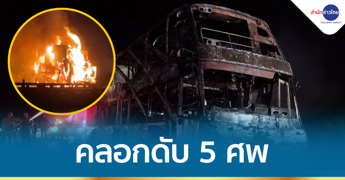 ขอนแก่น 13 เม.ย.-รถทัวร์เดินทางจากอุดรธานีไปกรุงเทพฯ ประสบเหตุไฟไหม้ คลอกผู้โดยสารเสียชีวิต 5 คน บาดเจ็บอีกนับสิบ