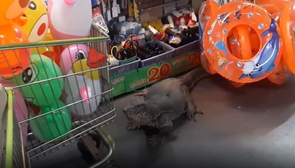 ฉะเชิงเทรา 13 เม.ย.-ตัวเงินตัวทองยาวเกือบ 2 เมตร บุกร้านทุกอย่าง 20 บาท ในห้างดัง ฉะเชิงเทรา แถมอ้าปากสู้ สุดท้ายถูกจับปล่อยป่าข้างทาง