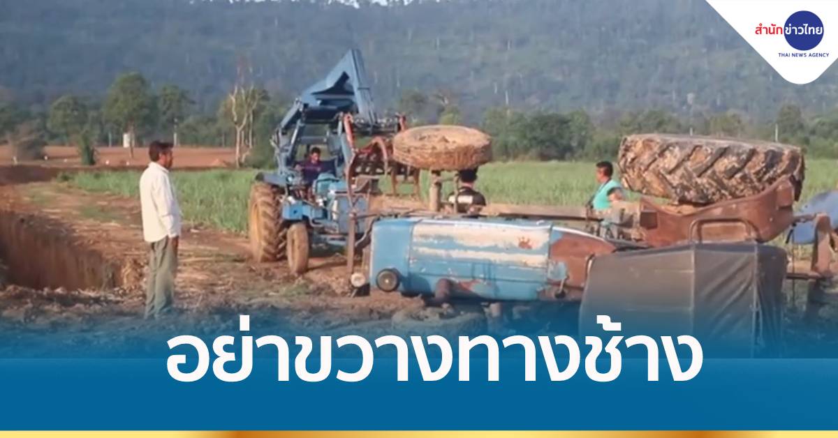 นครราชสีมา 14 เม.ย. – ช้างจะกิน อย่าขวาง! เจ้าของไร่อ้อยนำรถไถ 2 คันมาขวาง ขุดร่องน้ำยาวกว่า 200 เมตร ป้องกันช้างมาบุกกินพันธุ์อ้อย สุดท้ายโดนช้างดันรถไถจนหงายท้อง บุกเข้ามากินอ้อยได้เหมือนเดิม