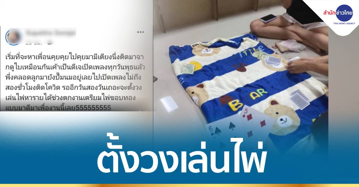16 เม.ย.-เพจดังโพสต์แฉสาวติดเชื้อโควิด-19 ตั้งวงเล่นไพ่ในโรงพยาบาลสนาม เผยหารายได้ช่วงตกงาน ชาวเน็ตจวก มองไม่เหมาะสม
