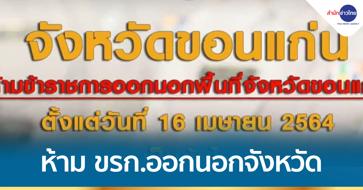 ขอนแก่น 16 เม.ย. – ผู้ว่าฯ ขอนแก่น ออกประกาศห้ามข้าราชการออกนอกพื้นที่จังหวัด หากจำเป็นเร่งด่วนให้ชี้แจงเหตุผลและอนุญาตเป็นรายกรณี จนกว่าจะมีคำสั่งเปลี่ยนแปลง