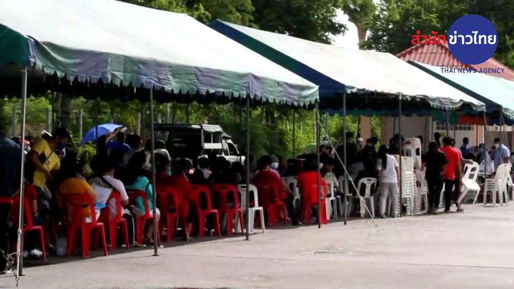 อยุธยา 18 เม.ย.-ผู้ประกอบการ-พนักงานร้านอาหารในตลาดกลางกุ้งอยุธยา รอคิวตรวจเชิงรุกเพียบ หลังพบผู้ติดเชื้อโควิดในตลาด 20 คน
