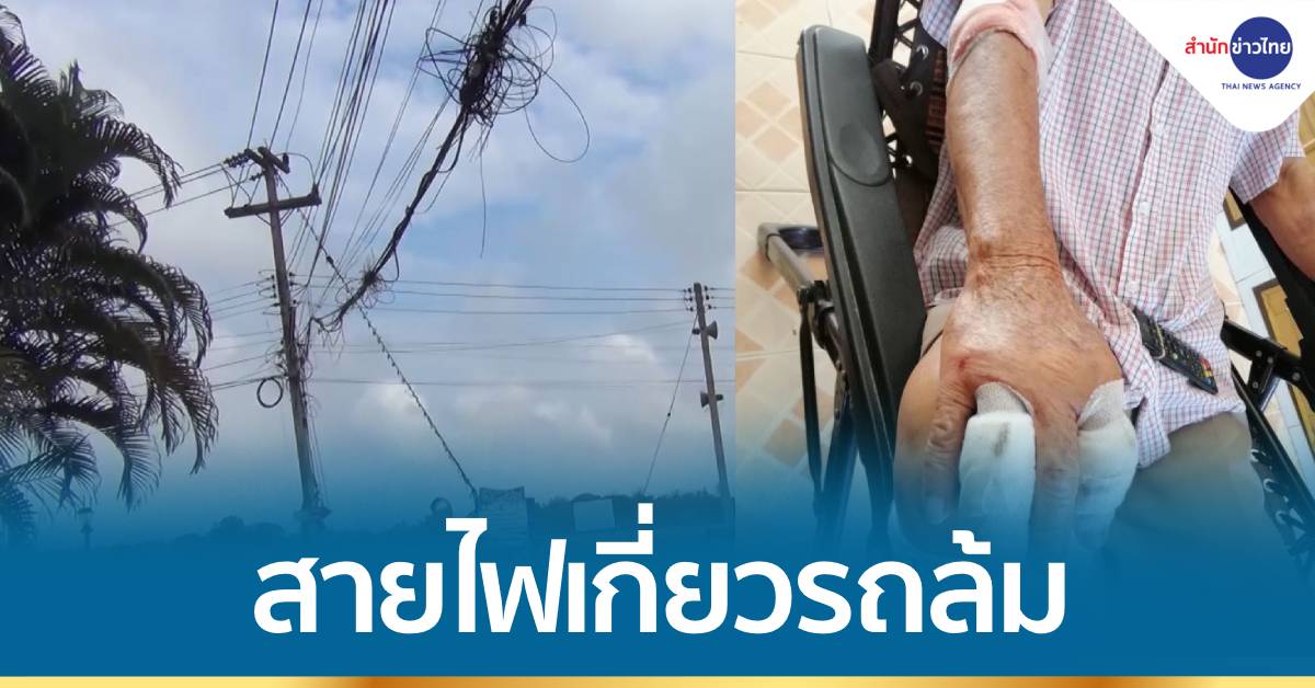 ลำปาง 18 เม.ย.-ตาวัย 84 ปี ขี่ จยย. เกี่ยวสายสื่อสารที่ห้อยลงมากลางถนน จนรถล้ม บาดเจ็บ เย็บ 28 เข็ม ยังไม่มีหน่วยงานใดแสดงความรับผิดชอบ