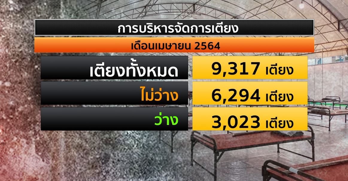 ตอนนี้เตียงมีทั้งหมด 9,317 เตียง มีการครองเตียงอยู่ หรือเตียงที่ไม่ว่าง 6,294 เตียง และยังว่างอยู่ 3,023 เตียง
