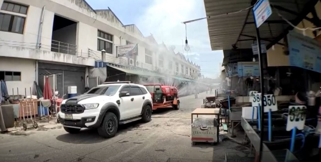 เจ้าหน้าที่เร่งทำความสะอาดและพ่นน้ำยาฆ่าเชื้อรอบตลาดกลางเพื่อเกษตรกร (ตลาดกุ้ง) ต.หันตรา อ.พระนครศรีอยุธยา จ.พระนครศรีอยุธยา เพื่อสร้างความเชื่อมั่นให้ผู้ประกอบการและลูกค้า หลังคณะกรรมการควบคุมโรคจังหวัดพระนครศรีอยุธยา มีคำสั่งให้ปิดตลาดแห่งนี้ 7 วัน คือระหว่างวันที่ 21-27 เม.ย.นี้ เนื่องจากตรวจพบผู้ติดเชื้อจากพื้นที่ดังกล่าวแล้วกว่า 10 คน โดยวันที่ 23 เม.ย. จะมีทีมแพทย์เข้ามาตรวจซ้ำกลุ่มเสี่ยงในตลาดกลางฯ อีกครั้ง เพื่อให้แน่ใจว่าไม่มีผู้ติดเชื้อเพิ่ม จากนั้นเมื่อครบกำหนดปิดตลาด 7 วัน จะมีการประเมินอีกครั้งว่าผ่านเกณฑ์ประเมินด้านสาธารณสุขหรือไม่ โดยเฉพาะระบบคัดกรองและการเฝ้าระวัง ผู้ประกอบการและลูกจ้างทุกคนจะต้องมี COVID Passport ยืนยันว่าผ่านการตรวจแล้วและมีความปลอดภัย ก่อนประเมินร่วมกันว่าจะสามารถเปิดทำการค้าขายได้หรือไม่ สำหรับวันนี้มียอดผู้ติดเชื้อรายใหม่ 14 คน ทำให้มีผู้ป่วยสะสมรวม 203 คน