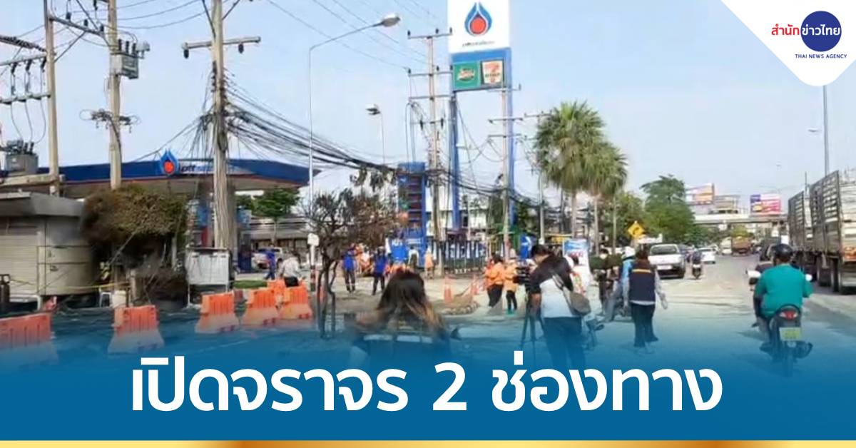 นครปฐม 22 เม.ย.- เหตุไฟไหม้โกดังเก็บน้ำมันเครื่องริมถนนเพชรเกษม พื้นที่ อ.สามพราน จ.นครปฐม เมื่อช่วงเย็นวานนี้ เช้าวันนี้ สามารถเปิดเส้นทางให้รถวิ่งได้แล้ว 2 ช่องทาง อีก 1 ช่องทางปิดให้เจ้าหน้าที่ปฏิบัติงาน