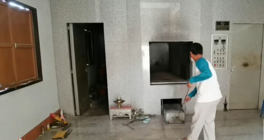 หลังจากนั้นเมื่อวาน (28 เม.ย.) ครอบครัวได้นำศพไปประกอบพิธีฌาปนกิจที่วัดทุ่งตาล ต.เจดีย์หัก เจ้าหน้าที่โรงพยาบาลราชบุรีได้ห่อศพตามมาตรการ มีเจ้าหน้าที่สวมชุด PPE และทำการฉีดน้ำยาฆ่าเชื้อบริเวณรอบเมรุและเตาเผา จากนั้นได้นำร่างของผู้เสียชีวิตเข้าเตาเผาด้วยระบบไฟฟ้าทันที จากนั้นได้นำเศษเถ้ากระดูกจำแนกใส่โกศ ซึ่งระหว่างประกอบพิธี ไม่มีญาติและไม่มีพิธีสวด มีเพียงบิดาของผู้ตาย เจ้าหน้าที่โรงพยาบาล และเจ้าหน้าที่ประจำเมรุของวัดเท่านั้น. – สำนักข่าวไทย