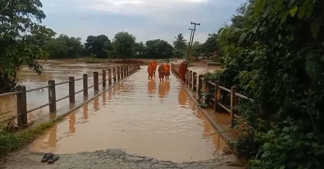 ชัยภูมิ 30 เม.ย.- อ่วม! น้ำป่าไหลทะลักจากเขาพังเหยท่วมถนน สะพาน ไร่นา หลายหมู่บ้านถูกตัดขาดจากโลกภายนอก บางจุดระดับน้ำสูงกว่า 1 เมตร พระสงฆ์ต้องเดินลุยน้ำบิณฑบาต