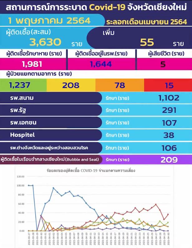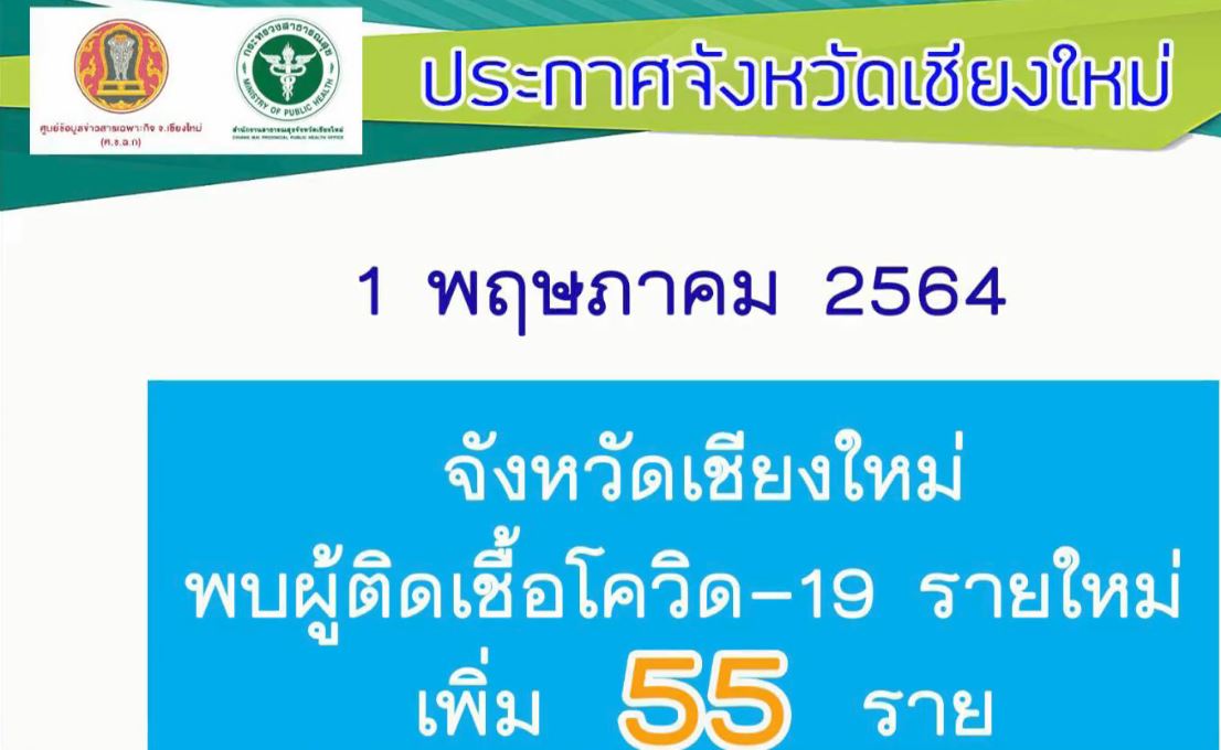 เชียงใหม่ 1 พ.ค. – สสจ.เชียงใหม่ เผยวันนี้พบผู้ติดเชื้อโควิด เพิ่มอีก 55 ราย เสียชีวิต 5 ราย