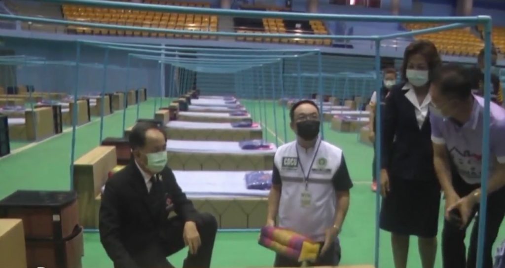 โรงพยาบาลสนามแห่งนี้ได้รับการสนับสนุนเตียงกระดาษจากบริษัทเอสพีจี แพคเกจจิ้ง จำกัด (มหาชน) 90 เตียง จึงนำที่นอน ผ้าห่ม มุ้ง เจลแอลกอฮอล์ และหน้ากากอนามัย มามอบให้เพิ่มเติม เพื่อรองรับผู้ป่วยโควิด-19 ที่อาจจะเพิ่มขึ้น