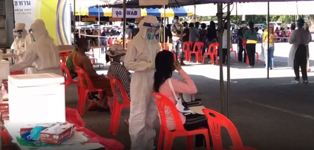 ส่วนบริเวณสนามศาลากลางจังหวัดนครราชสีมา มีประชาชนจำนวนมากต่อคิวตรวจหาเชื้อโควิดกับรถชีวนิรภัยพระราชทานวันสุดท้าย ซึ่งเริ่มตรวจตั้งแต่วันที่ 19 เมษายน ขณะนี้ตรวจไปแล้ว 19,035 ราย ในจำนวนนี้ตรวจพบเชื้อ 26 ราย. – สำนักข่าวไทย