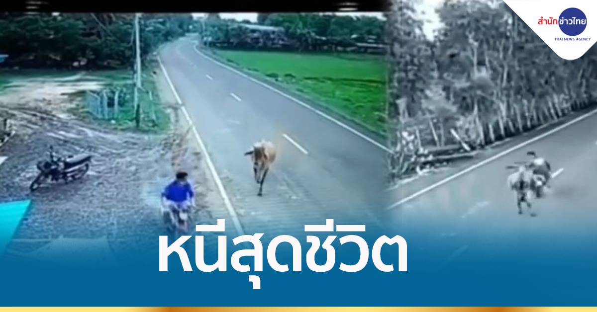 นางสมพงษ์ ศิริวรรณ แม่ยาย เล่าว่า เหตุการณ์นี้เกิดขึ้นช่วงเย็นวานนี้ ขณะที่ตนกำลังยืนทำก๋วยเตี๋ยวให้ลูกค้า อยู่ๆ ลูกเขยที่ขี่รถจักรยานยนต์จะเลี้ยวเข้ามาที่บ้าน ตอนนั้นสังเกตเห็นว่าวัวแม่ลูกอ่อนมีอาการผิดปกติ หูตั้งหางชี้ จึงตะโกนบอกลูกเขยให้ขี่รถหนี อย่าหันหลังกลับมามอง พอลูกเขยขี่จักรยานยนต์ออกไป วัวแม่ลูกอ่อนตัวนั้นก็ไล่ตามขวิดไปไกลกว่า 50 เมตร เคราะห์ดีที่ลูกวัวตัวดังกล่าววิ่งตามแม่ไป วัวแม่ลูกอ่อนเลยหยุดไล่ จึงอยากเตือนผู้ที่ใช้รถสัญจรให้ระมัดระวังวัวควายที่เลี้ยงไว้ตามริมถนน โดยเฉพาะแม่ลูกอ่อน อาจจะหวงลูกเป็นพิเศษ. – สำนักข่าวไทย