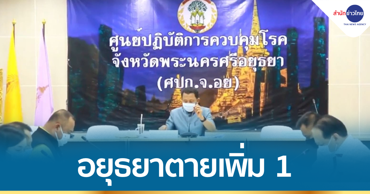พระนครศรีอยุธยา 3 พ.ค.-จ.พระนครศรีอยุธยา รายงานพบผู้เสียชีวิตจากโควิด-19 เพิ่มอีก 1 คน เป็นหญิงวัย 74 ปี มีภาวะปอดอักเสบ-การหายใจล้มเหลว