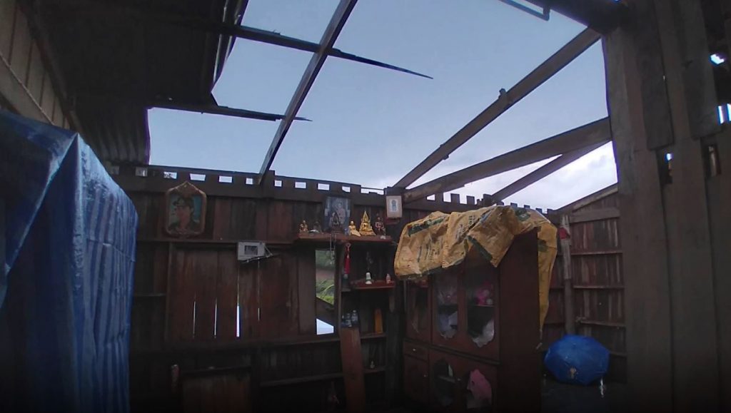 เจ้าของคลิปเปิดเผยกับผู้สื่อข่าวว่า เหตุการณ์เกิดขึ้นเวลาประมาณ 16.00 น. ของวันที่ 4 พ.ค. จู่ๆ เกิดฝนตกหนักและลมกระโชกแรงมาก คนในบ้านต่างตกใจเพราะไม่เคยเจอความรุนแรงแบบนี้มาก่อน ตนจึงถ่ายคลิปไว้ หลังจากนั้น 15 นาทีผ่านไป พายุฝนและลมก็สงบลง โดยพบหลังคาบ้านปลิวหายเกือบหมดหลัง มีตู้เสื้อผ้า ทีวี และของภายในบ้านเปียกแต่ไม่มาก เพราะโชคยังดีที่หลังจากหลังคาปลิว ลมฝนก็เบาลง ส่วนเพื่อนบ้านก็ได้รับความเสียหายเช่นเดียวกัน มีต้นไม้ล้มทับ เบื้องต้นทางผู้นำชุมชนได้มาถ่ายรูป เพื่อประสานความช่วยเหลือไปยังหน่วยงานที่รับผิดชอบแล้ว