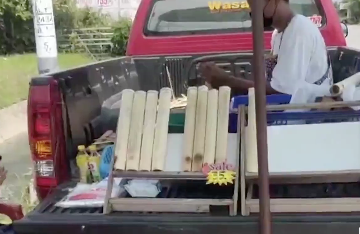 นครราชสีมา 6 พ.ค.- อดีตหนุ่มลูกจ้างโรงงานผันตัวเป็นเจ้าของธุรกิจ “ขายข้าวหลาม” บริเวณหน้าปั๊มน้ำมันตลาดนอก จ.นครราชสีมา เมนูเด็ดประจำฤดูกาลนี้หมี้ไม่พ้นไส้ทุเรียน สร้างรายได้ตกวันละ 5,000-6,000 บาท
