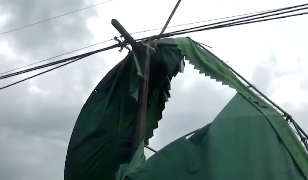 ส่วนที่จังหวัดชลบุรีเกิดเหตุพายุถล่ม ลมแรงหอบเต็นท์ขึ้นพาดสายไฟฟ้าแรงสูง เจ้าหน้าที่การไฟฟ้าส่วนภูมิภาคจังหวัดชลบุรี ต้องเข้ารื้อเต็นฑ์ที่ปลิวไปค้างอยู่สายไฟฟ้าแรงสูงออก โดยเจ้าหน้าที่การไฟฟ้าใช้เวลากว่า 2 ชั่วโมงจึงรื้อลงมาได้ ซึ่งต้องตัดกระแสไฟฟ้าก่อนที่เจ้าหน้าที่จะใช้รถเครนขนาดเล็กนำคนขึ้นไปรื้อลงมา โดยที่โคนเสาไฟฟ้ามีรอยถูกกระแทกขาด จึงต้องเปลี่ยนเสาไฟฟ้าอีก 1 ต้นด้วย ค่าเสียหายก็หลายหมื่นบาท ฝากเตือนช่วงนี้พายุเข้าลมแรงมาก ควรใช้เชือกผูกรัดเสาให้ดี ขนาดตนมัดรัดอย่างดีแล้วยังเอาไม่อยู่.-สำนักข่าวไทย