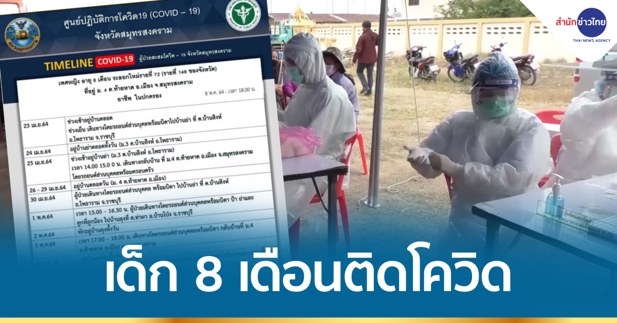 สมุทรสงคราม 9 พ.ค.- ที่ จ.สมุทรสงคราม พบเด็กหญิงวัย 8 เดือน ติดโควิด-19 จากย่า มีประวัติเดินทางไปมาหาสู่กันเป็นประจำ