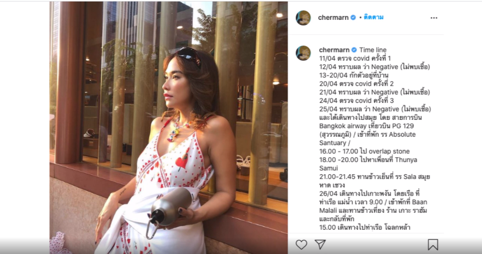 ทั้งนี้ ดาราสาว พลอย เฌอมาลย์ เดินทางไปท่องเที่ยวยังเกาะสมุย และเกาะพะงัน จังหวัดสุราษฎร์ธานี ระหว่างวันที่ 25 เมษายน ถึงวันที่ 8 พฤษภาคม ภายหลังเดินทางกลับถึงกรุงเทพมหานคร ได้ไปสวอปหาเชื้อโควิด-19 จนพบว่าได้ติดเชื้อโควิด-19 และเข้าการรักษาที่ Hospitel ในเวลาต่อมา
