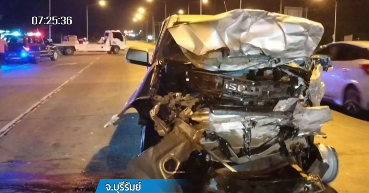 สอบสวนทราบว่า นายบุญเลิศ คนขับรถกระบะอีซูซุ ขับมาจาก อ.ประโคนชัย มุ่งหน้าไปทาง อ.นางรอง เมื่อมาถึงสี่แยกจุดเกิดเหตุ รถคันอื่นกำลังจอดรอสัญญาณไฟ แต่รถคันดังกล่าวกลับขับฝ่าสัญญาณไฟแดงด้วยความเร็ว เป็นเหตุให้พุ่งชนกับรถกระบะโตโยต้า ซึ่งกำลังจะเลี้ยวขวา ทำให้รถพังเสียหายทั้ง 2 คัน มีผู้ได้รับบาดเจ็บรวม 6 คน ทั้งนี้ ได้ประสานทางโรงพยาบาลให้ทำการเจาะเลือดคนขับไว้ เพื่อตรวจสอบว่ามีแอลกอฮอล์ในร่างกายหรือไม่. – สำนักข่าวไทย