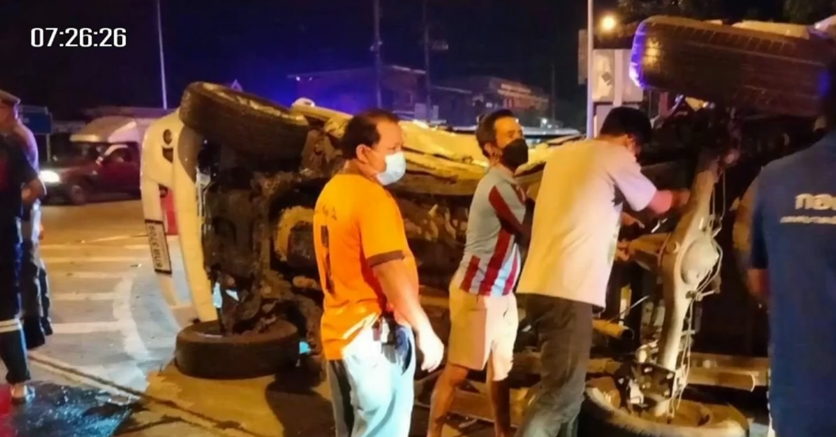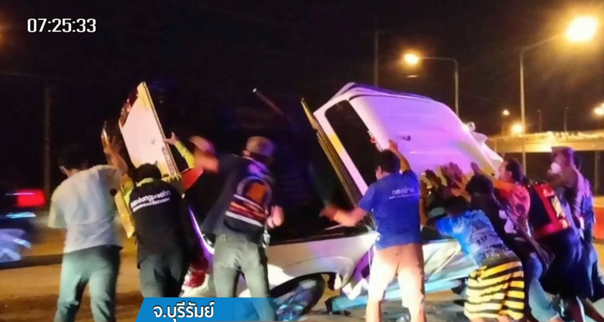 หลังเกิดเหตุ พนักงานสอบสวน สภ.เฉลิมพระเกียรติ จ.บุรีรัมย์ เข้าตรวจสอบจุดเกิดเหตุ พบรถกระบะ ยี่ห้อโตโยต้า ทะเบียน 6 กต 3709 กรุงเทพมหานคร พลิกคว่ำอยู่ในที่เกิดเหตุ สภาพพังเสียหาย ภายในรถคันดังกล่าวมีผู้บาดเจ็บ 4 คน คือ นายภุชงค์ คงประโคน อายุ 28 ปี คนขับ, นางอรวรรณ คงประโคน อายุ 27 ปี ภรรยา, ด.ช.อนุชา คงประโคน อายุ 8 ปี และ ด.ญ.อริสรา คงประโคน ถูกนำตัวส่งโรงพยาบาลนางรอง และโรงพยาบาลเฉลิมพระเกียรติ