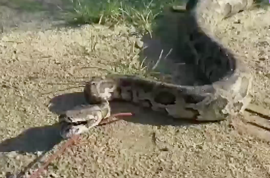 ผู้ใช้เฟซบุ๊ก Aree Tanyapanyachon เขียนระบายความในใจเป็นข้อความว่า “เมื่อวานนี้งูเข้าเล้า 2 ตัวกินไก่ชนไป2ตัววันนี้งูก็เข้าเล้าไก่ไข่อีก 1 ตัว กินไก่ไข่ไปอีก 1 ตัวล่ะพรุ่งนี้จะมาอีกมั้ย เราเกรงใจหน่วยกู้ภัยเต้าต้องมาจับให้ทุกครั้ง วันนี้เลยจับเองทั้งกลัวทั้งเกรงใจเอ้าจับก็จับๆ ทั้งกลัวๆ นี่แหละ” ผู้สื่อข่าวไปที่บ้านเลขที่ 111/24 ม.10 ต.หนองอิรุณ อ.บ้านบึง จ.ชลบุรี ที่ประตูเหล็กหน้าบ้านมีป้ายกระดาษเขียนไว้ว่า “งูจ๋าอย่าเข้ามาอีกเบื่อที่จะจับแล้ว” พบกับนายสมชาย และนางอารีย์ ธัญญะปัญญาชน อายุ 53 ปี สามีภรรยาเจ้าของบ้าน กำลังเตรียมถุงกระสอบเพื่อนำมาใส่งูหลามที่ทั้งสองคนจับเอาไว้ พบว่างูหลามขนาดใหญ่ น้ำหนัก 11 กิโลกรัม ยาว 3 เมตร ลำตัวกลมใหญ่เพราะมันกินไก่แม่พันธุ์ไป ก่อนเพื่อจะมอบให้กู้ภัยนำไปปล่อยคืนสู่ธรรมชาติ