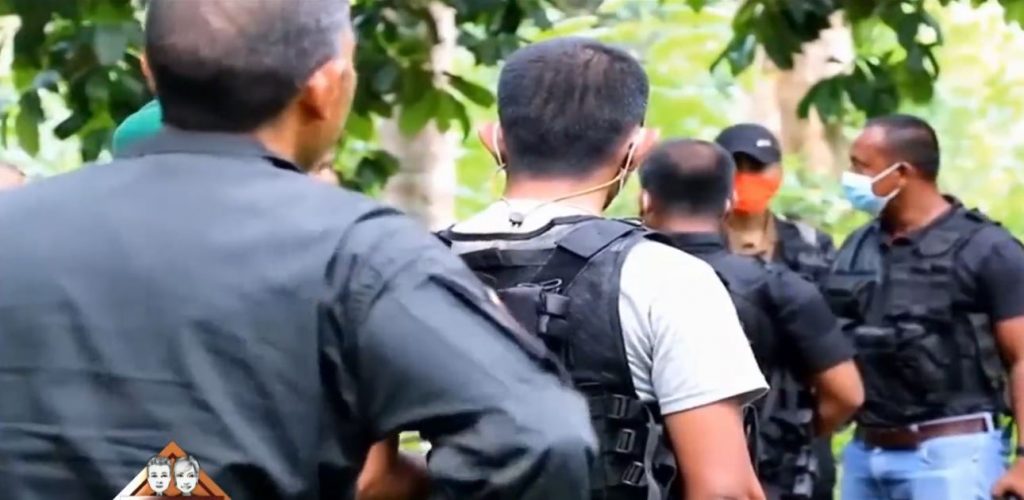 เจ้าหน้าที่ต้องสวมเสื้อเกราะเพื่อความปลอดภัย เนื่องจากทราบว่าผู้ต้องหามีปืน และก่อนถึงภูเขาได้พบบ้านหลังหนึ่งปลูกในสวนยาง จึงตรวจค้นแต่ไม่มีคนอยู่ จากนั้นได้กระจายกำลังปิดล้อมภูเขา ใช้เวลานานกว่า 1 ชั่วโมงแต่ไม่พบตัว