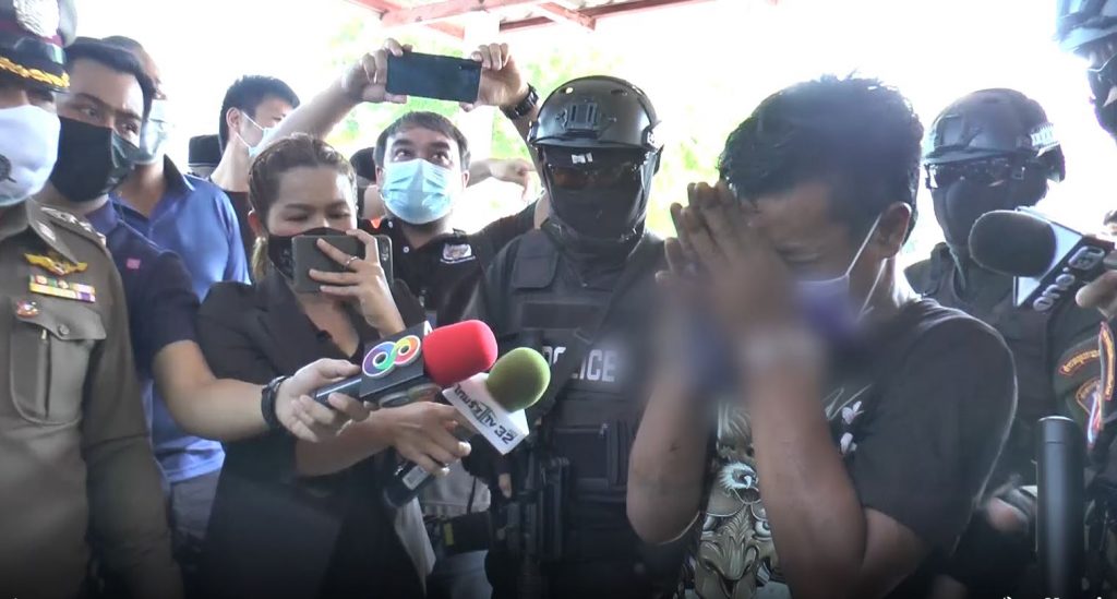 ทันทีที่เห็นภาพอดีตภรรยานายอ้นถึงกับร้องไห้อย่างหนัก และกล่าวว่าเสียใจที่ทำ ยอมรับเวรรรมที่ก่อ พร้อมย้อนถามนักข่าวจะถามอะไรหนักหนา ถ้าผมไม่โกรธไม่แค้นคงไม่ทำ แต่เมื่อนักข่าวถามกลับโกรธเรื่องอะไร ถึงได้ลงมือเหี้ยมโหดขนาดนี้ นายอ้นไม่ตอบ และย้ำว่าแทงไปกี่ครั้งไม่รู้ เพราะสติแตก แทงอย่างเดียว ไม่ได้นับ แถมมีดยังพลาดมาแทงตัวเองถึง 2 แผล จากนั้นตำรวจคุมตัวนายอ้นทำแผนโดยมีชุดควบคุมฝูงชนกว่า 50 นายคุ้มกัน เพราะเกรงนายอ้นถูกประชาทัณฑ์ คดีนี้ตำรวจแจ้งข้อหาฆ่าผู้อื่น และพาอาวุธไปในเมือง หมู่บ้าน หรือทางสาธารณะ โดยไม่มีเหตุอันควร.-สำนักข่าวไทย