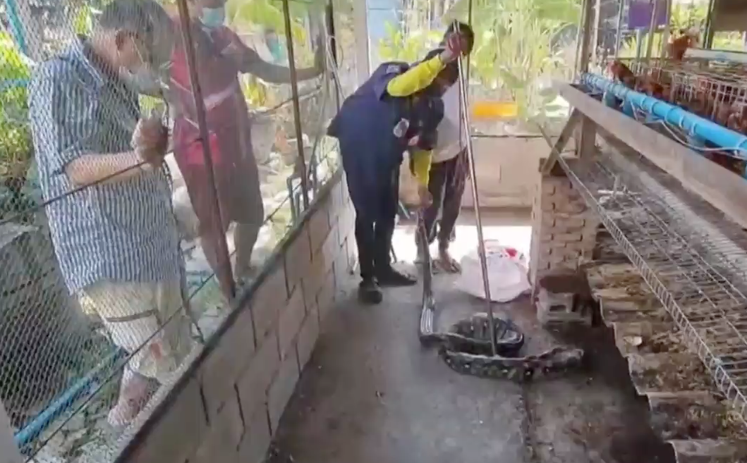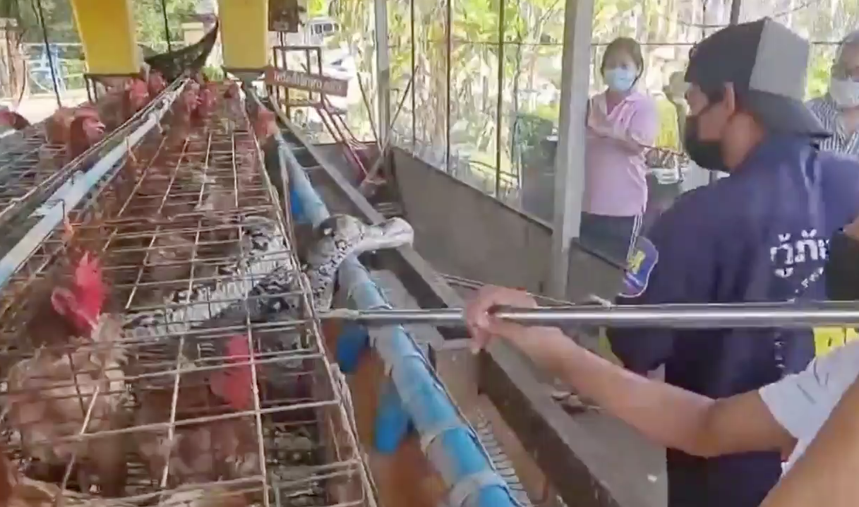 นายเอกลักษณ์ บอกว่า โรงเรียนเลี้ยงไก่นี้เพื่อนำไข่มาทำโครงการอาหารกลางวันให้กับนักเรียน เลี้ยงมาแล้วรุ่นนี้เป็นรุ่นที่ 5 เลี้ยงไก่ไข่ไว้ประมาณ 100 ตัว ระยะหลังไก่หายไปครั้งละ 2 – 3 ตัว ตอนแรกก็สงสัยว่ามีใครมาขโมยไป ก็เฝ้าจับตาดูอยู่นาน เมื่อตอนสายๆ ครูเวรออกมาเก็บไข่ ก็พบงูเหลือมตัวใหญ่มากตัวนี้กำลังรัดตัวไก่พยายามจะกินไก่คาปาก จึงแจ้งตนและช่วยกันดึงไก่ออกมาได้ 1 ตัว แต่ก็ตายเสียแล้ว ส่วนในท้องงูก็ป่องจึงคิดว่าคงมีอยู่ในท้องอย่างน้อย 1 ตัวที่ถูกกินไป จึงรีบแจ้งหน่วยกู้ภัยให้มาช่วยกันจับงูไป อย่างไรก็ตามก่อนหน้านี้มีฝนตกน้ำท่วมขังพื้นที่ใกล้เคียงเล้าไก่ คาดว่าช่วงนี้งูเหลือมคงหาอาหารตามธรรมชาติไม่ได้ จึงได้บุกเข้ามาในเล้าไก่และจับไก่กินเป็นอาหารดังกล่าว.-สำนักข่าวไทย