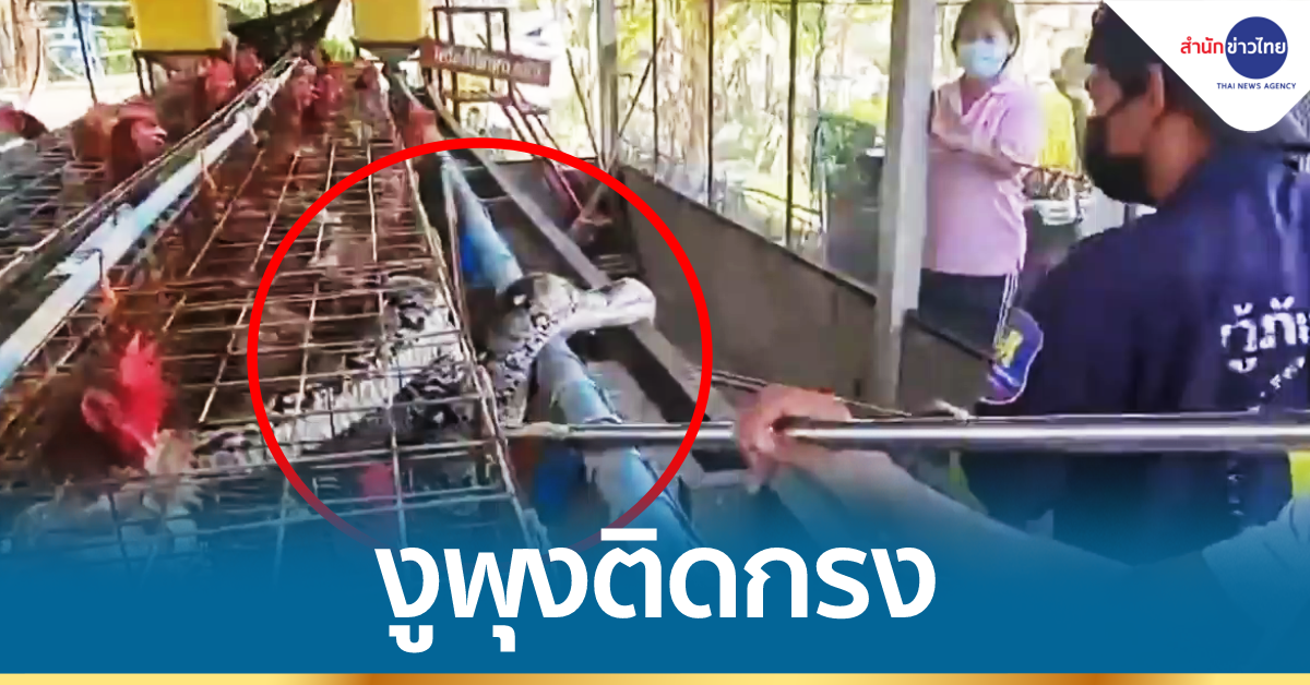 สมุทรสงคราม 17 พ.ค.- งูเหลือมยาว 3 เมตร เข้าไปกินไก่ในกรงเลี้ยงของโรงเรียนวัดคู้สนามจันทร์ อ.เมือง จ.สมุทรสงคราม จนเลื้อยไม่ไหว เขมือบเข้าไปในท้องแล้ว 1 ตัว และยังคาที่ปากอีก 1 ตัว กู้ภัยพยายามดึงออกจากกรงทุลักทุเล ก่อนจับใส่กระสอบนำไปปล่อยป่า
