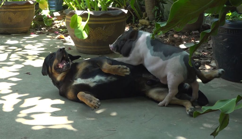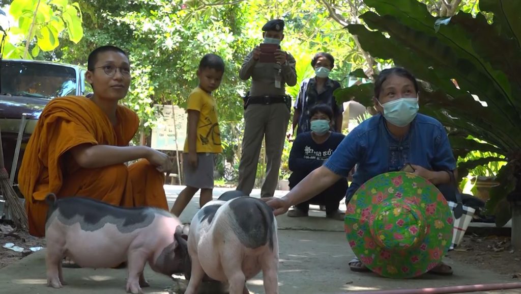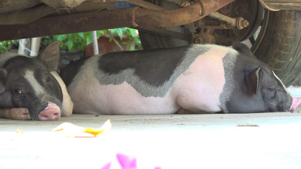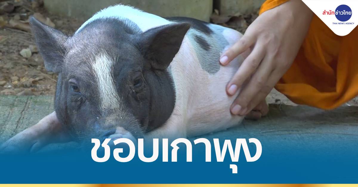 ขอนแก่น 19 เม.ย. – หมูวัดแสนเชื่อง สายพันธุ์ออสเตรีย ก่อนนอนต้องมีคนเกาพุงกล่อม แถมชอบกินข้าวเหนียวกับไข่ ชอบเล่นกับหมาวัด