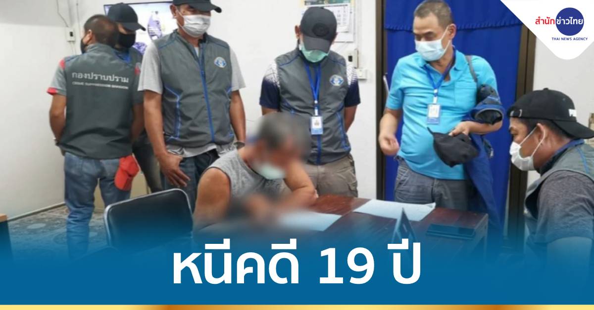 ต่อมาตำรวจกองปราบ ได้สืบสวนติดตามผู้ต้องหารายนี้จนทราบว่า ผู้ต้องหายังคงกบดานอยู่ในพื้นที่ จ.กาญจนบุรี เจ้าหน้าที่ชุดจับกุมจึงได้ลงพื้นที่ตรวจสอบ โดยพบผู้ต้องหาเดินอยู่บริเวณริมถนนสาธารณะทางหลวงชนบท จึงเข้าจับกุม ซึ่งระหว่างทำการจับกุมผู้ต้องหาได้ถอดเสื้อผ้าวิ่งหนีการจับกุมเข้าป่าข้างทาง แต่ท้ายที่สุดก็ถูกเจ้าหน้าที่ตำรวจจับกุมตัวไว้ได้ หลังจากนั้นจึงนำตัวผู้ต้องหาส่ง พนักงานสอบสวน สภ.เลิงนกทา ดำเนินคดีตามกฎหมายต่อไป จากการสอบถามผู้ต้องหาให้การภาคเสธ โดยอ้างว่าอาวุธปืนที่พบในที่เกิดเหตุเป็นของผู้ตาย โดยผู้ตายได้นำมาข่มขู่ตน ตนจึงได้แย่งปืนดังกล่าวมาและยิงใส่ผู้ตายจำนวน 1 นัด ก่อนหลบหนีไป โดยคดีนี้มีอายุความ 20 ปี ตำรวจใช้เวลาตามหาและจับกุมผู้ต้องหาตามหมายจับถึง 19 ปี ก่อนที่จะจับได้ที่จังหวัดกาญจนบุรี ก่อนครบอายุความ 1 ปี.-สำนักข่าวไทย